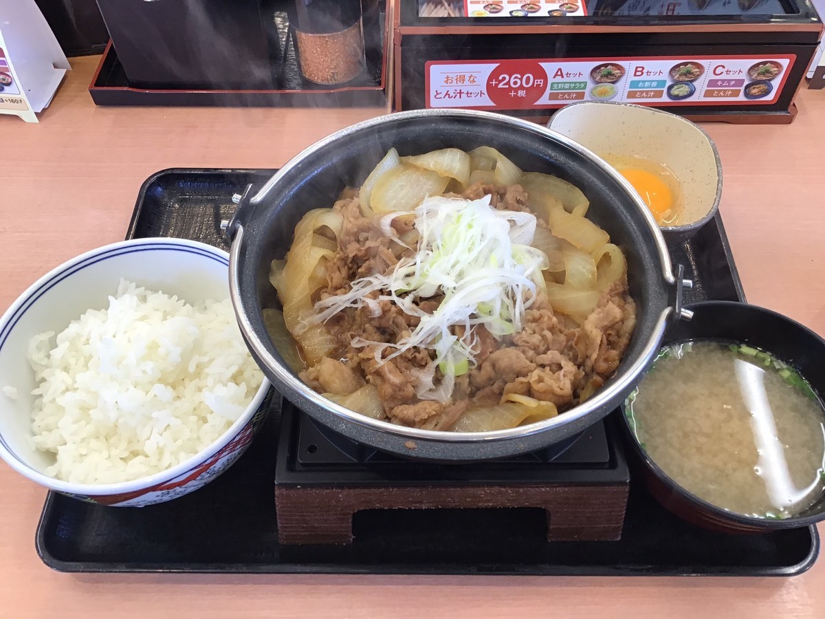 吉野家(湘南新道辻堂店)で牛の鍋焼き御膳。712円。