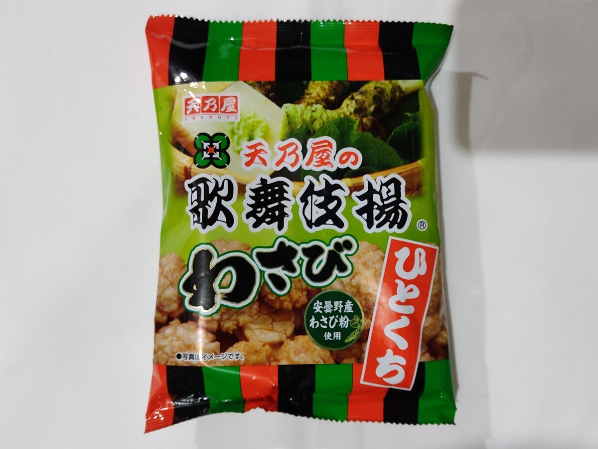 ひとくち歌舞伎揚わさびを食べた。ダイソーで108円。